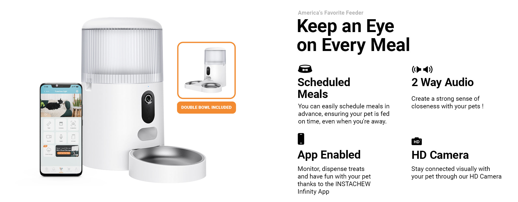 - APP Control: Manage meal schedules and portion sizes effortlessly from anywhere using the user-friendly INSTACHEW INFINITY APP.