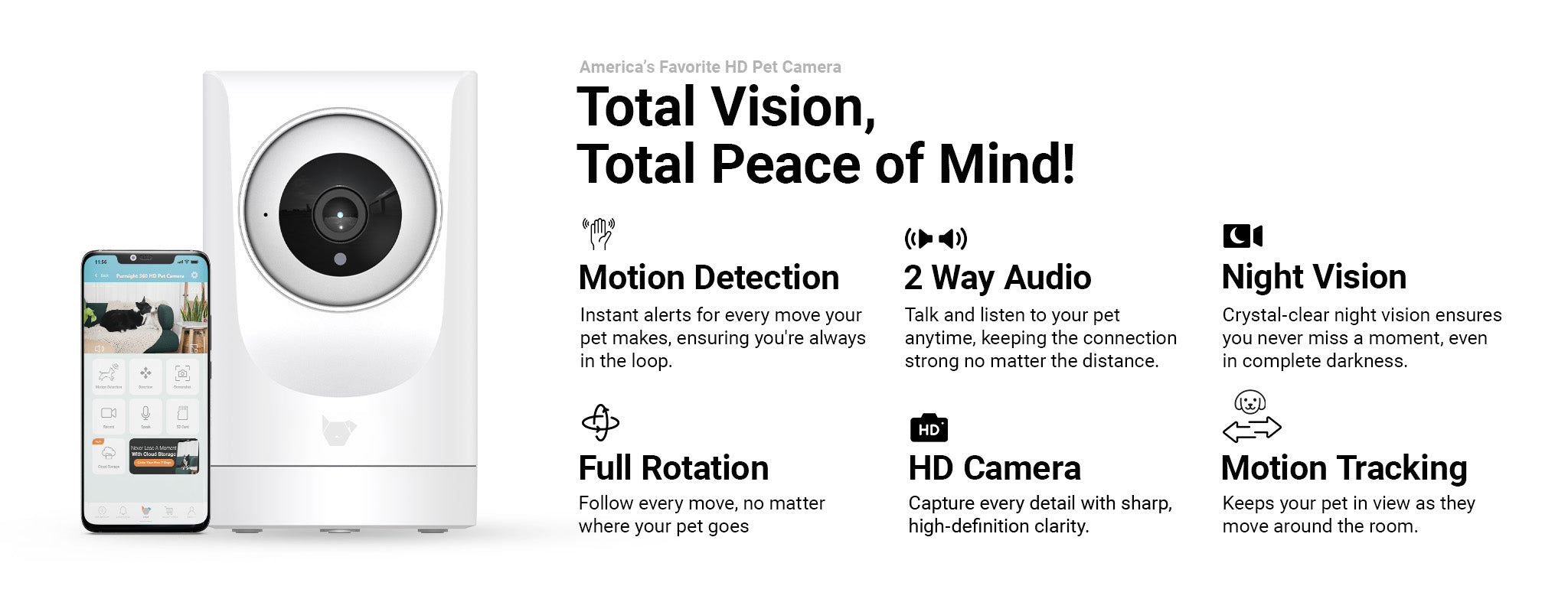It's the purrfect solution for any dog or cat owner who wants some extra reassurance. Get on board with the modern way of taking care of your pets with the Purrsight 360° pet camera home monitoring 3 piece bundle!